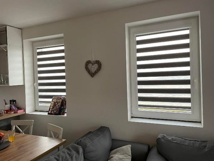 Tento druh okenních rolet, známý jako roleta den a noc, je v součastnosti nejpoužívanějším druhem vnitřního stínění. Dvojitá látka v sobě ukrývá dvě funkce zároveň. Pokud se plné a průsvitné pruhy střídají, světlo částečně proniká do interiéru. Když na sebe plné pruhy na přední i zadní látce navazují, docílíte úplného zastínění.Pestrý výběr typů a barev látek umožňuje dokonalé designové dotváření místností.